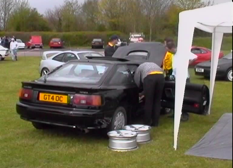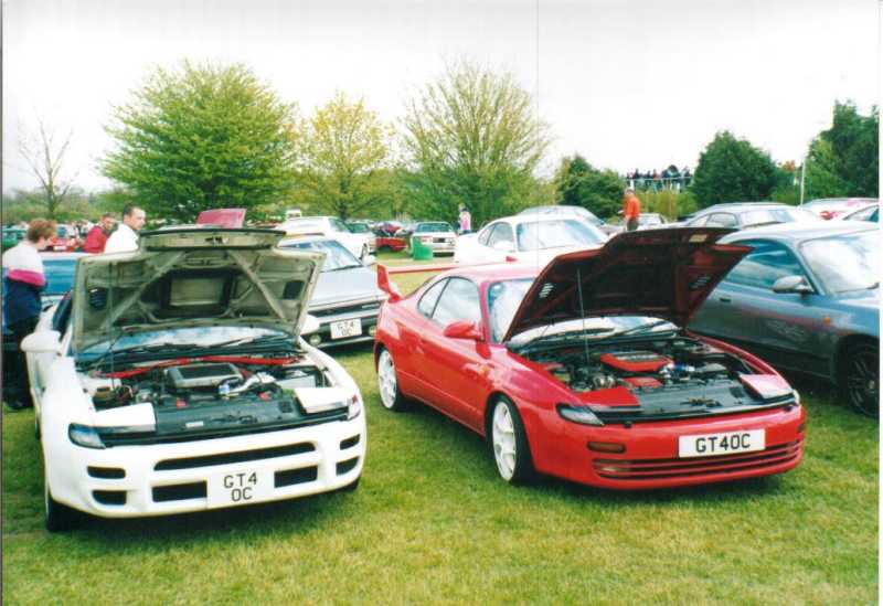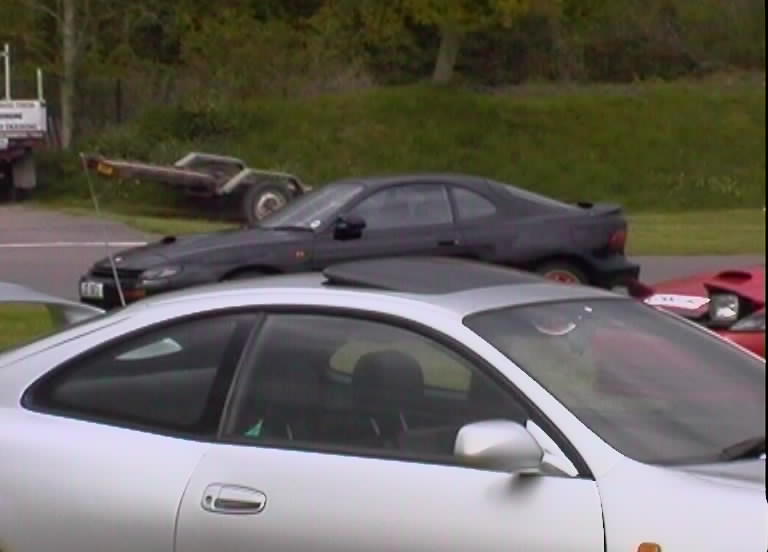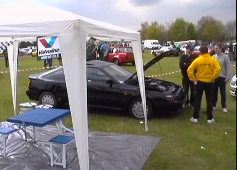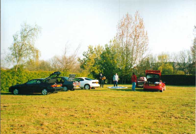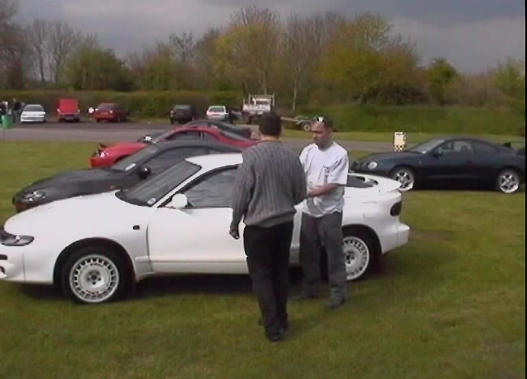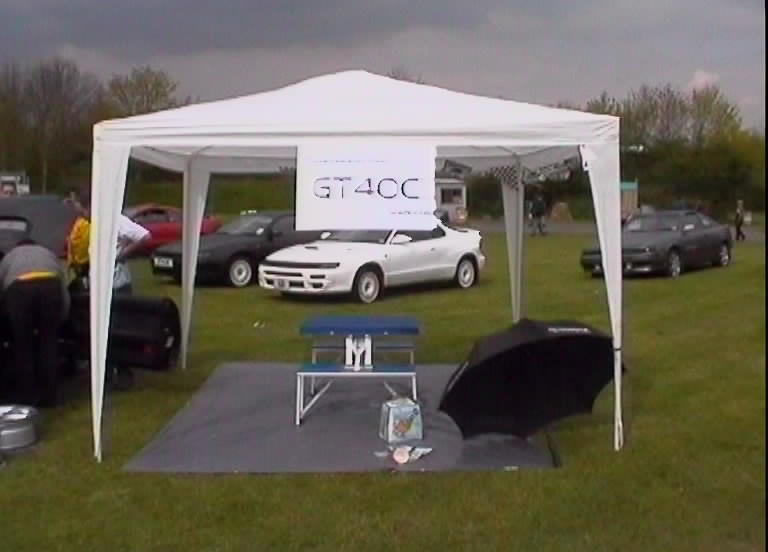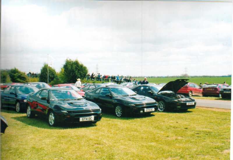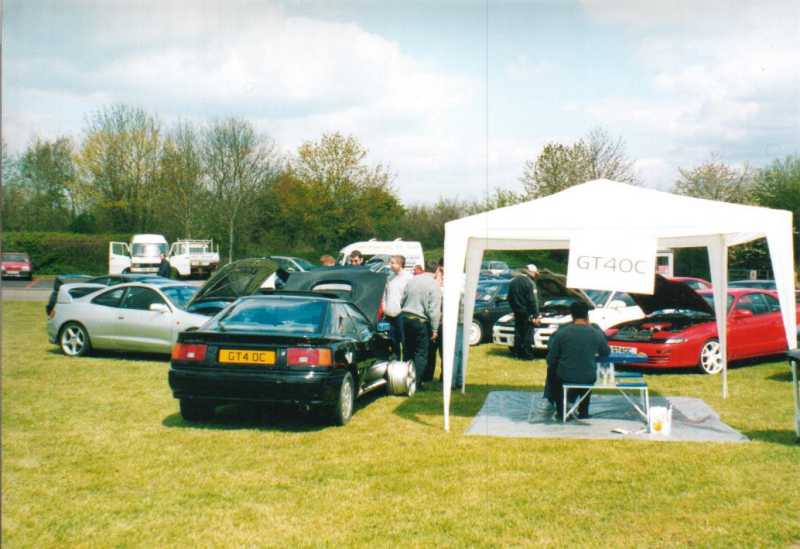 The Castle Combe meet always was gonna be spectacular. A meeting organised by the Mitsubishi Evo club with a host of other car clubs invited, guest rally cars and stars and of course the fantastic circuit in Gloucestershire. Wiggy and James Newbury did a great job of getting everything together on the GT4OC side of things and Stuart Booton made a stirling effort to organise all of the GT4OC number plates. The UK list was buzzing with excitement up to the event which took place on 5/5/2001. A few of us decided to drive down the night before and camp out, but I forgot my dress and ended up sleeping in the car - hmm. The drive down for me was long, as I was on my own, but I met up with the Mitsubishi Starion club on the way down and had a chat with a few of the owners and started debating who would have the biggest turnout of owners - challenge on. I got to the campsite around 11pm and Wiggy, Si, Stew and Dan were already plastered. I joined the fun and we got the torches out and checked out each others cars while trying to stop beer bottles falling over on the grass. I turned in about 2am but I remember the others listening to heavy rock music into the later hours. Needless to say I was up first, washed and watered before the others poked their heads of the tents and cars. We didn't all get away without paying for the site, Wiggy still owes me money, but we were off in good time.